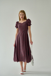 Нежное платье из 100% вискозы станет фаворитом в вашем летнем гардеробе! Акцентная линия декольте, открытая спинка, короткий рукав а-ля "фонарик" облегчают образ и делают его невероятно романтичным. Платье отрезное по талии, рельефные швы по переду и вытачки на спинке деликатно повторяют изгибы тела и делают лиф приталенным, расклешение нижней части платья позволяет ему красиво развеваться при ходьбе и не сковывает движений. Для удобства в использовании в среднем шве на спинке предусмотрена потайная молния, а также резинки по окату и низу рукава. Пикантности добавляет разрез по ножке, а "вау" эффекта легко достичь, спустив рукава с плеч на руки. Натуральность состава ткани обеспечит воздухопроницаемость и гигроскопичность и подарит комфорт и лёгкость. Рекомендации по уходу - на этикетке. Размеры соответствуют стандартной размерной сетке. Дополнительные замеры: Длина рукава 30см. Длина по спинке от верхней точки плеча 128см.