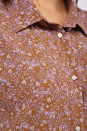 Комплект женский 2-х предметный,состоящий блузки и брюк. Блузка прямого силуэта с центральной застежкой на петли-пуговицы. Воротник рубашечный с отрезной стойкой. Рукав цельнокроеный 3/4. Брюки прямого силуэта слегка заужены к низу. В боковых швах выполнены карманы. Пояс притачной с кулисой и завязками по переду. В боковых резинка. Длина блузки по спинке 70,5см, длина рукава 49 см, ширина рукава на уровне низа 50-52- 22 см, 54-56- 23см. Реальные замеры блузки 50-110см, от-110 см, об-115 см, 52 ог-114см, от-114 см, об-119 см, 54 ог-118 см, от-118 см, об-123 см, 56 ог-122 см,от-122 см, об-127 см.