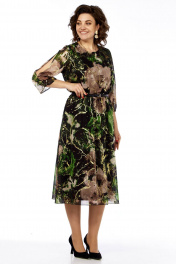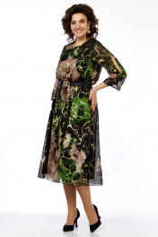 Платье с цельнокроеным вырезом и вставкой из резинки Matini 3.1797 изумруд