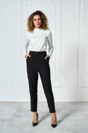 Брюки классического кроя, Немного заужены к низу. По переду со стрелками, притачным поясом со шлевками и отрезными боковыми карманами. Сзади талевые вытачки и стрелки. Низ на подгибке