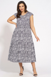 Летнее платье трапециевидного силуэта из хлопка с коротким рукавом Медея и К 2200 бело-синий
