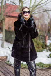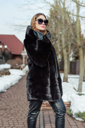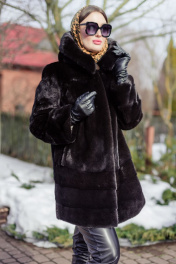 Полупальто из норки с кулиской и угломатыми полосками Мехофф Камелия85.223-520 темно-коричневый