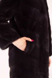 Пальто норковое Лада 90 022-521. Длина изделия - 90 см. Прямой силуэт, по низу изделия вшита кулиска с фиксаторами. Шубка диагнонального кроя без росшива. Такой крой визуально стройнит и вытягивает силуэт своей обладательницы. Классический глубокий капюшон выступает отличной заменой шапке. Рукав полуреглан полной длины, выполнен из цельной норки. Есть плечевые накладки, а также кулиска с фиксаторами по низу рукавов. Прорезные карманы по бокам. Изделие на шубных крючках.