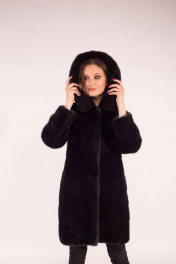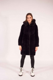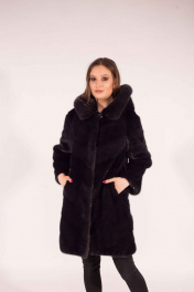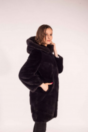 Пальто из норки с капюшоном и прорезными карманами Мехофф Лада90.022-521 мокрый_асфальт