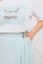 Комплект юбки и футболки на запах с принтом и карманами Michel chic 1376 белый,голубой