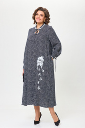 Макси платье трапеция из вискозы с капелькой и вышивкой Michel chic 2170 темно-синий,горох