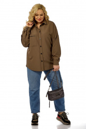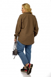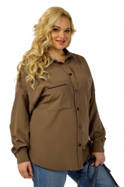 Блуза-рубашка из хлопка с накладным карманом Michel chic 769 коричневый