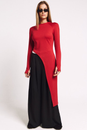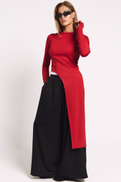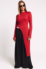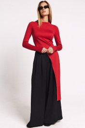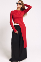 Брюки-"палаццо" из струящегося черного материала со складками по переду и декоративной лентой-поясом. Посадка - средняя. Карманы в боковых швах.