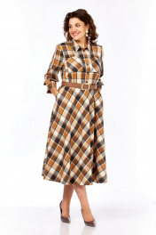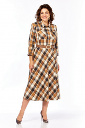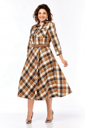 Платье Милора-стиль 1385 карамельно-коричневая_клетка