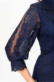 Нарядное женское платье полуприлегающего силуэта, выполнено из гипюра с глитером и текстиля. Лиф платья отрезной по линии талии, с вытачками, на лифе обработана застежка на петли-пуговицы. Юбка платья прямого покроя, выполнена из гипюра с глитером. Спинка выполнена из однотона (текстиля), со средним швом и вытачками, в среднем шве по низу шлица. Рукав выполнен из гипюра с глитером, расклешенный к низу и присборен на манжет из гипюра. Элегантное платье отличный выбор для вашего образа на любое мероприятие! в 52р. Ширина груди- 53см, Ширина талии -48см, Ширина бедер- 58см, длина рукава- 46см, ширина рукава 21,5см.