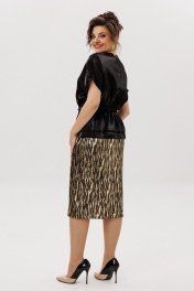 Нарядный, женский комплект полуприлегающего силуэта, выполнен из трикотажного полотна с дизайном и органзы. Платье выполнено из трикотажного полота с дизайном и расшитого пайетками, на трикотажной подкладке, горловина фигурной формы, на полочке выполнены нагрудные вытачки. Спинка со средним швом и вытачками, пройма обтачена подкладкой. Блуза выполнена из органзы, отрезная по линии талии, с втачным поясом, лиф блузы с V-образным вырезом и заложенными складками по линии талии, также на поясе выполнена застежка на два декоративных крючка. Спинка блузы с втачным поясом, в пояс вставлена резинка. Рукав блузы спущенный, оптимальной длины, из органзы. Эффектный комплект из яркой и стильной ткани отлично дополнит ваш образ на любом мероприятии! В 52р Платье: Ширина груди- 106см, Ширина талии -100см резинка, Ширина бедер- 116см Блузка: Ширина груди- 116см, Ширина талии -92см на резинке, Ширина бедер- 120см, длина рукава- 38см, ширина рукава 46см. Длина платья 109см, длина блузы 62см.