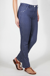 Демисезонные зауженные брюки из джинса со эластаном Mirolia 303 крупн.горох