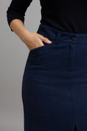 Тёплая полуприлегающая юбка миди с кокетками и застежкой Mirolia 971-2 синяя клетка