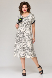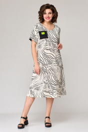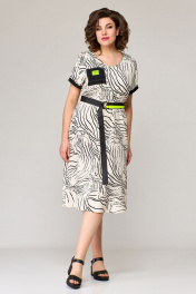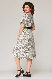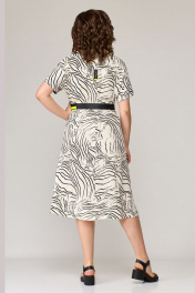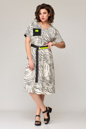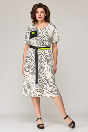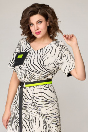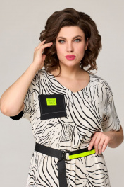 Платье выполнено из вискозного полотна, максимально комфортного и легкого. По переду v-образный вырез горловины и накладной карман с декоративным нашивным элементом. Рукав одношовный, линия плеча слегка спущенная. Спинка разрезная по среднему шву, шов декорирован нашивным элементом. В комплект входит пояс. Длина платья 111 см. Длина рукава от горловины 34