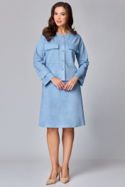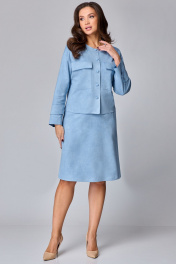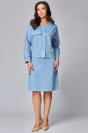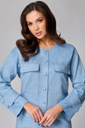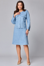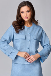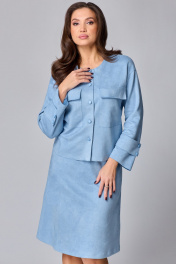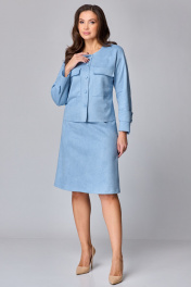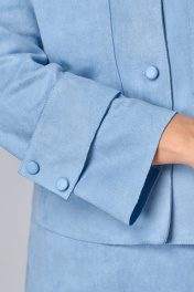 Комплект женский 2-х предметный состоящий из жакета и юбки выполненного из замшевой ткани. Жакет прямого с накладными карманами с клапаном. Спинка со средним швом. Рубашечный воротник. Спущена линия плеча. Рукав втачной одношовный по низу пата с 2-мя пуговицами. Застежка центральная на 5 пуговицы и петли. Жакет без подкладки.Юбка А-силуэта на обтачке. Застежка сзади на потайную тесьму-молнию. Юбка на подкладке.