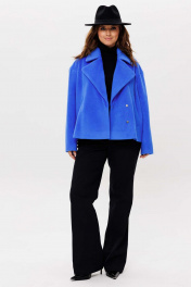 Полупальто двубортное с застежкой на магнитные кнопки, прямого силуэта выполнено из фактурной ткани. Рукав втачной, спущенное плечо. Карманы прорезные с листочкой. Воротник с отрезной стойкой. Пальто на подкладке.