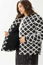 Куртка женская прямого силуэта, с центральная застежка на кнопки. Перед с нагрудными вытачками и фигурными накладными карманами. Рукав втачной 2х шовный, по низу с пришивным довязом. Горловина обработана довязом. Низ фигурными разрезами. Подкладка на флисе, утеплитель.