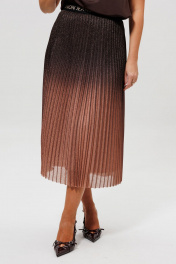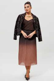 Эта модная юбка гофре с градиентом (Арт. 1276) станет ярким акцентом в вашем гардеробе. Модель выполнена в технике гофре и окрашена в изысканный градиент — от глубокого шоколадного верха к нежному светло-коричневому низу. Широкая резинка на поясе обеспечивает идеальную посадку по фигуре и максимальный комфорт. Юбка в складку отлично сочетается с базовыми топами (арт.1164), водолазками(арт 810) и укороченными жакетами, позволяя создавать стильные повседневные и вечерние образы. Размеры 46-52
