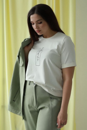 Блуза женская свободного силуэта с втачными одно шовными рукавами и круглой горловиной. По переду декоративная печать.