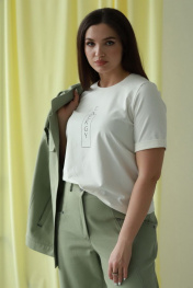 Белая свободная хлопковая блуза на каждый день Mislana 223 вертикальный_принт