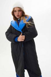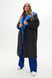 Пальто утепленное прямое из плащевой ткани с капюшоном Mislana С846 черный