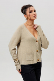 Элегантный и уютный джемпер из мягкого трикотажа — идеальный выбор для тех, кто ценит комфорт и стиль в повседневной жизни. Модель выполнена в нежном оливковом оттенке, который легко сочетается со многими цветами одежды. V-образный вырез подчеркивает линию шеи и создает эффект стройности, а длинные рукава обеспечивают тепло и свободу движений. Кардиган дополнен двумя накладными карманами на передней части, что добавляет практичности и стиля. Застежка на пуговицы позволяет регулировать посадку и создавать разнообразные образы.