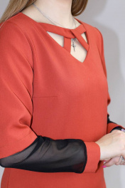 Длина изделия: 100-106 см. Длина рукава: 62 см. Комплектация: Платье Характеристика: Прямого силуэта. Рукав двойной из основной ткани и сетки. Декоративная отделка горловины.