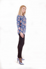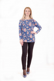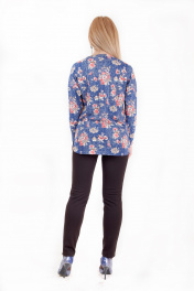 Круглогодичная приталенная туника из трикотажа с V-вырезом Mita ЖМ913 синий+красные-цветы