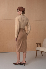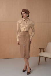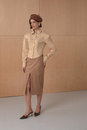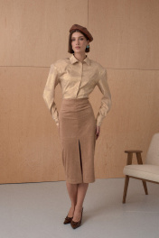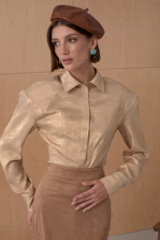 Блуза с имитацией корсетной формы по талии. Усиленная и расширенная форма плеча. Длина от плечевой точки у основая шеи 54 см. Состав 80% ПЭ, 18% вискоза, 2% спандекс