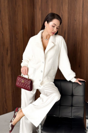 Жакет из приятного пушистого полотна. НЕ КОЛЕТСЯ. Жакет декорирован тесьмой. Низ изделия и низ рукава с довязом. Жакет на подкладке. Длина жакета 76 см, длина рукава от воротника 73 см. ОГ 42-44 р-р 111-113 см, 46-48 р-р 119-121 см. Состав 100% ПЭ
