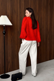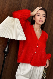 Блуза из пушистого трикотажного полотна. НЕ КОЛЕТСЯ. Застежка на пуговицы. Объёмные рукава снизу на резинке. Длина блузы 61 см, Длина рукава от воротника 75 см. ОГ 42-44 р-р 114-116 см, 46-48 р-р 122-124 см. Состав 100% ПЭ.