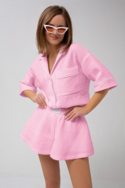 Розовый костюм двойка из хлопка и текстиля лето Mixan 4032/2