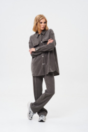 Мягкий демисезонный костюм из трикотажного вельвета: рубашка и брюки Mixan 4054