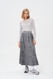 Юбка из экокожи, удлиненная, с пушистой резинкой, 90 см Mixan 6016