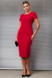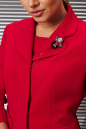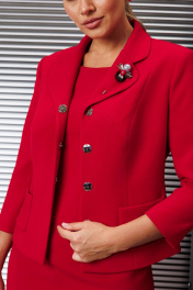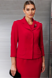 Костюм женский, состоящий из платья и жакета. Платье прилегающего силуэта. Спереди с рельефами, переходящими в вытачки. Спинка со средним швом, переходящим в шлицу. Рукав одношовный втачной. Горловина платья обработана подкройной обтачкой. Жакет прилегающего силуэта. По переду жакета рельефы, выходящие из проймы, и накладные карманы. Спинка со средним швом и рельефами. Застежка на декоративные кнопки. длина спинки жакета: 56,5 см длина платья: 112 - размеры 48-52 110,5 - размер 54 длина рукава: 50 см