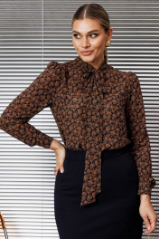 Эта классическая блузка отличается элегантным дизайном и вниманием к деталям. Блуза прямого силуэта, в боковых швах с разрезами, по переду с нагрудной вытачкой. Воротник-стойка, переходящий в бант. Рукав втачной, одношовный, снизу на манжете. Сверху по окату со сборкой. длина по спинке: 71см длина рукава: 62,5 см