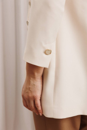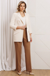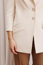 Жакет выполнен в классическом стиле с полуприлегающим силуэтом. Он удлиненный, имеет центральную застежку на одну пуговицу и элегантные детали, такие как спинка с средним швом и шлицей, а также перед с талиевыми вытачками и наклонными карманами с клапанами. Воротник пиджачного типа добавляет строгости, а втачные двухшовные рукава длиной 3/4 со шлицей в локтевом шве и пуговицей придают жакету изысканный вид. Жакет на подкладке. Мы собрали все элементы новогодней коллекции в единую капсулу, где каждая вещь - не просто предмет гардероба, а часть большой стилистической головоломки. Собирайте образы как конструктор, меняйтесь в течение вечера и будьте неотразимы в каждой роли! длина по спинке: 78 см длина рукава: 61,5 см