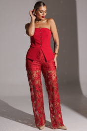 Капсула RED CODE - Ваша формула смелого праздника. Она создана для особых случаев включает в себя жакет, корсет и брюки, создавая элегантный и стильный образ. Брюки двухслойные, свободного силуэта. Нижняя часть представляет собой короткие шорты. Верхний слой выполнен из прозрачного гипюра с изысканной каймой по низу, что придает изделию особую утонченность. Верхний срез обрабатывается обтачкой. Молния сбоку.Мы собрали все элементы новогодней коллекции в единую капсулу, где каждая вещь - не просто предмет гардероба, а часть большой стилистической головоломки. Собирайте образы как конструктор, меняйтесь в течение вечера и будьте неотразимы в каждой роли! длина брюк по боковому шву: 115 см