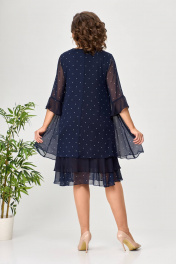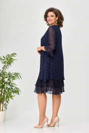 платье шифоновое в горошек синее с воланами Moda Versal П2440 т.синий