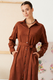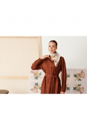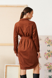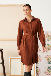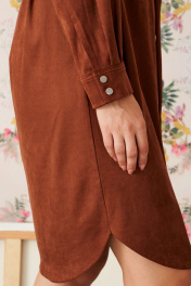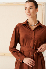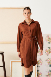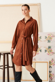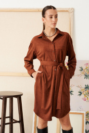 Платье свободного кроя с духом богемы. Мягкая замша, уютный прямой силуэт и выразительные детали: нагрудный карман, фигурный низ и складки на спинке. Съемный пояс поможет создать идеальный образ — от расслабленного до безупречно элегантного.