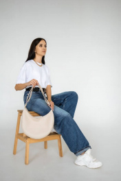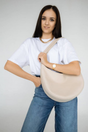 Бежевая экокожаная сумка-месяц с важными карманами и регулировкой шлейки MT.Style LUNA2 bez