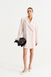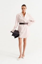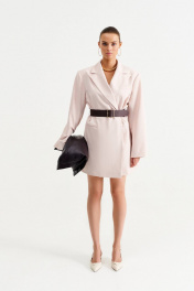 Оверсайз платье-жакет в полоску Впервые платье-пиджак появилось на показах в коллекциях Saint Laurent. Они показали, как можно носить блейзер без юбки или брюк, просто с колготами и каблуками. Бежевое в чёрную полоску платье-жакет с мужского плеча станет универсальным образом не только на вечеринку или торжество, но и на работу, свидание, встречу с подругами или поход на выставку. В комплекте идет пояс.
