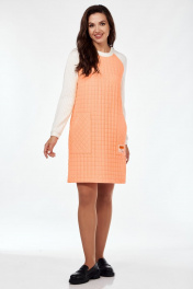 Платье А-силуэта из стежки и трикотажа с карманами Mubliz 119 молочно-оранжевый