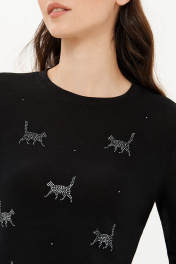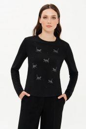 Лонгслив прямого силуэта от бренда NELVA из смесового вискозного полотна приятен к телу и мягко садится по фигуре. Уникальная аппликация из страз придает лонгсливу изюминку, делая его подходящим для мероприятий и особых планов. Также лонгслив легко впишется в повседневные образы, добавляя в будни нотки игривости. Овальный вырез горловины элегантно обрамляет линию шеи. Спереди выполнена аппликация из страз «Коты», которая привносит в образ уникальность и добавляет настроения. Этот лонгслив станет отличным выбором для уверенных в себе женщин, ценящих комфорт и стиль. С любовью и заботой о Вас, команда бренда NELVA!