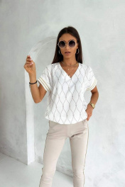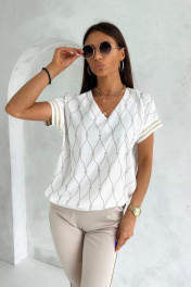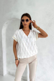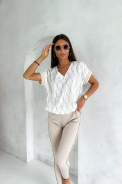 Летняя блузка с коротким рукавом и V-горловиной Nika.PL 02011 молочный