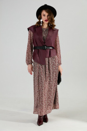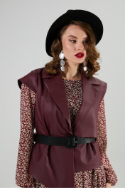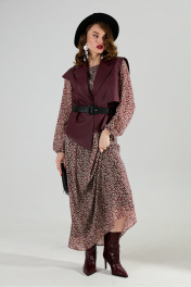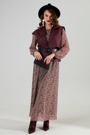 Жилет, платье NikVa 1020-3 листочки бургунди и бордо