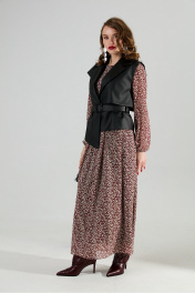 Жилет, платье NikVa 1020-4 листочки бургунди и чёрный