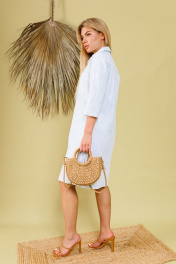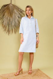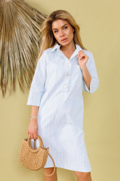Комфортное хлопковое платье длиной миди свободного прямого кроя со стояче-отложным рубашечным воротником. Рукава втачные длиной три четверти. По боковым швам - разрезы. Изделие без подкладки, с карманами.