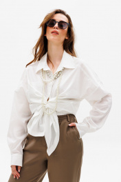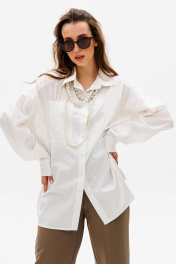 Объемная рубашка оверсайз с асимметричным бочком NikVa 531-2 сливочный