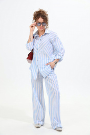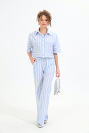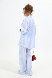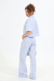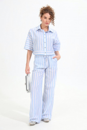 Брюки свободного кроя сочетают элегантность и комфорт. Широкая резинка на поясе с завязками и наличие функциональных карманов подчеркивают удобство модели.